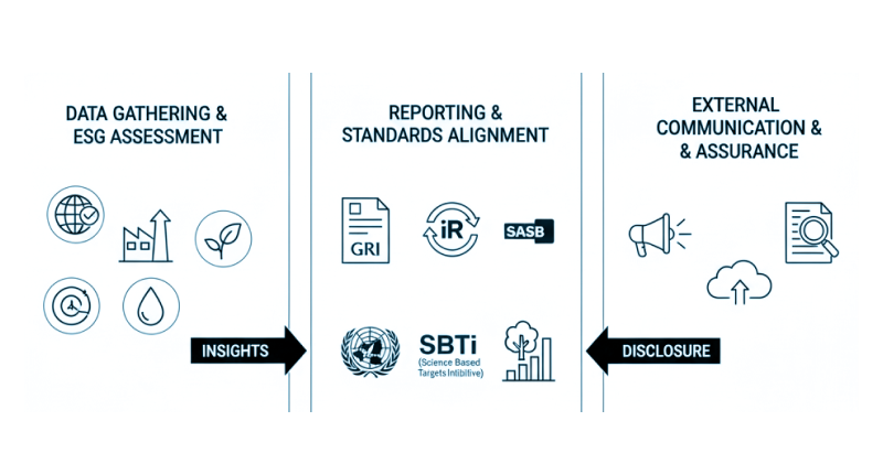 CSR and ESG report preparation aligned with GRI, IR, SASB, and SDG frameworks